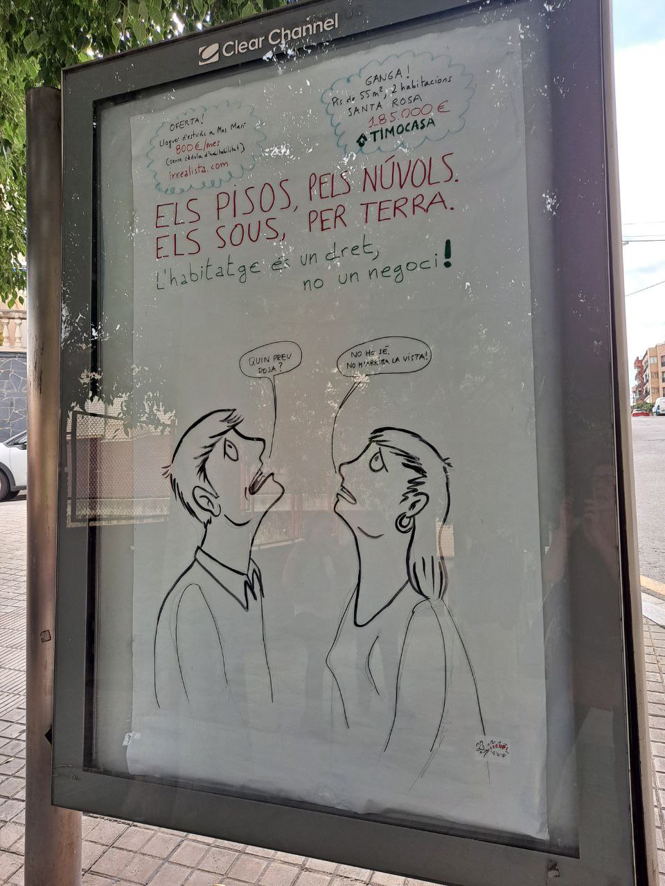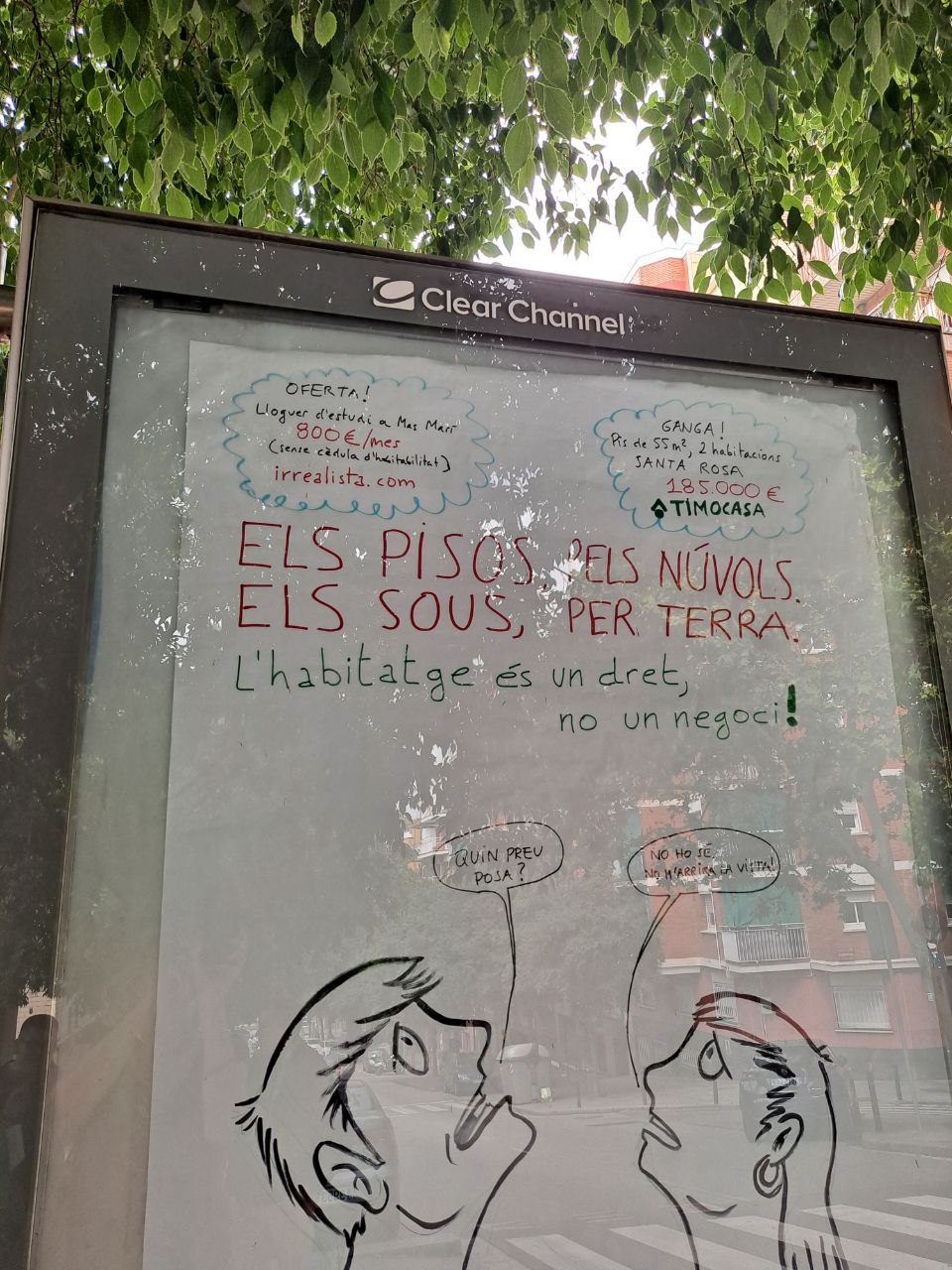 Escup! ha reconvertit alguns plafons publicitaris en murals en defensa del dret a l’habitatge a la nostra ciutat.