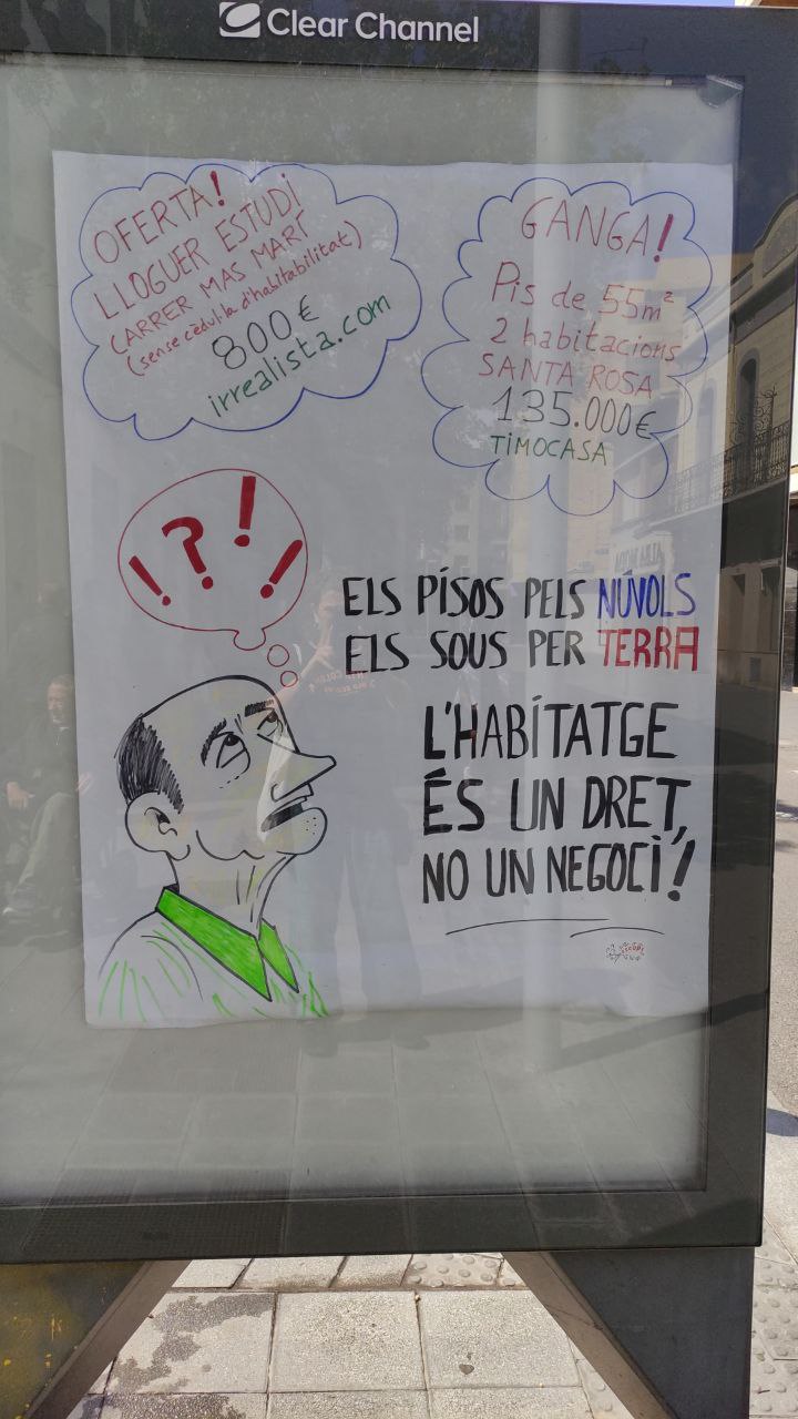 El lloguer d'un estudi sense cèdul·la d'habitatge al carrer Mas Marí 800€/mes, la compra d'un pis de 55m2 (2 habitacions) a Santa Rosa 135.000€ ... fins on estem disposats a aguantar??