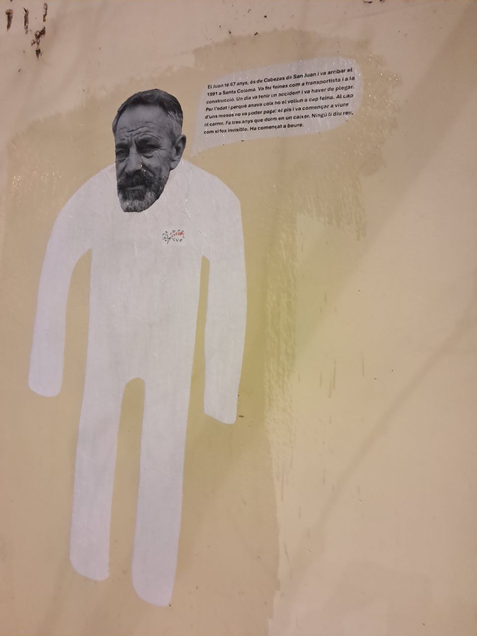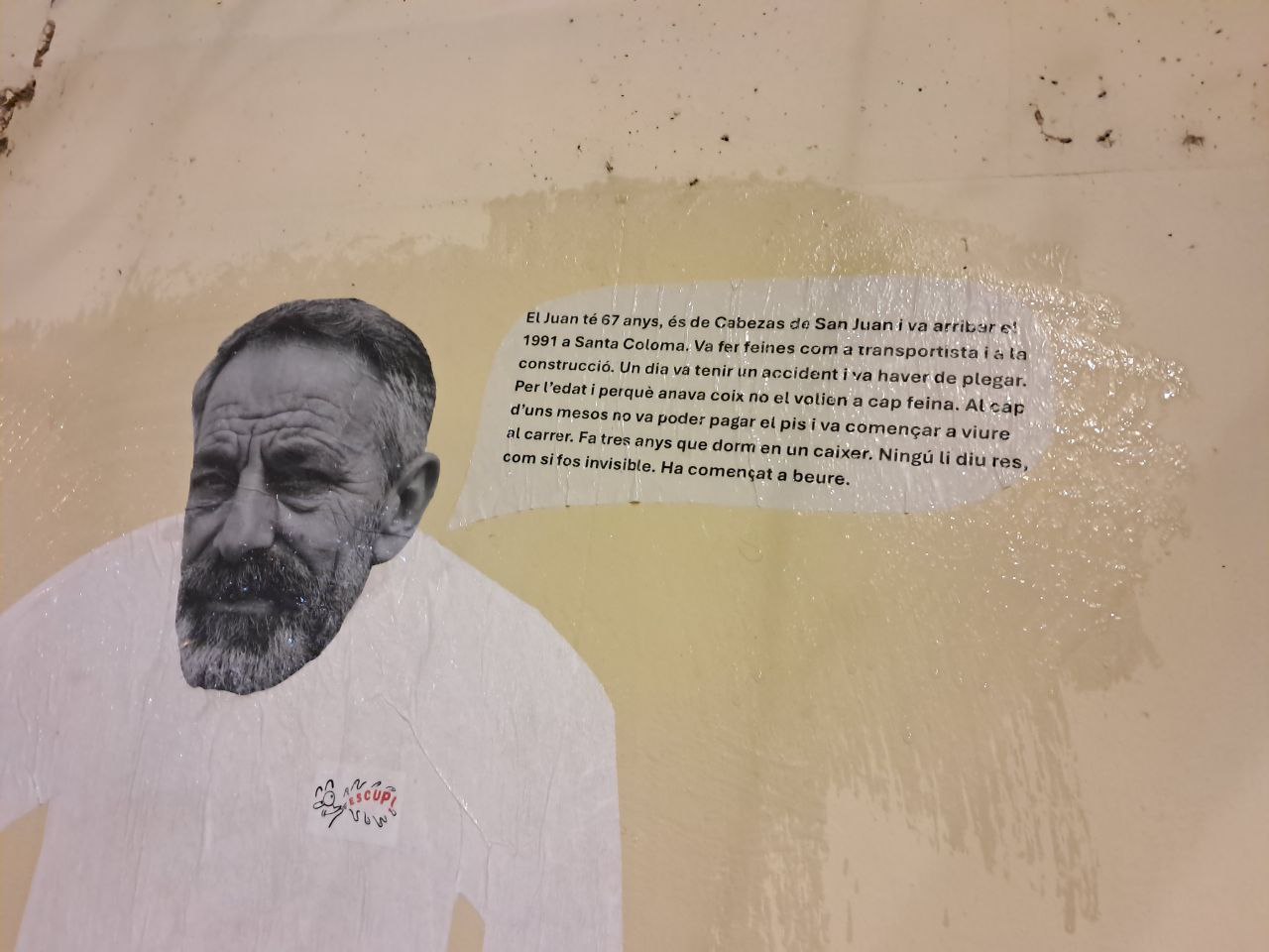 El Juan va patir un accident laboral mentre feia de paleta. Amb l’edat que té, 57 anys, i que va coix per l’accident, ningú li dona feina. Va perdre la casa i fa tres anys que dorm en places i caixers.